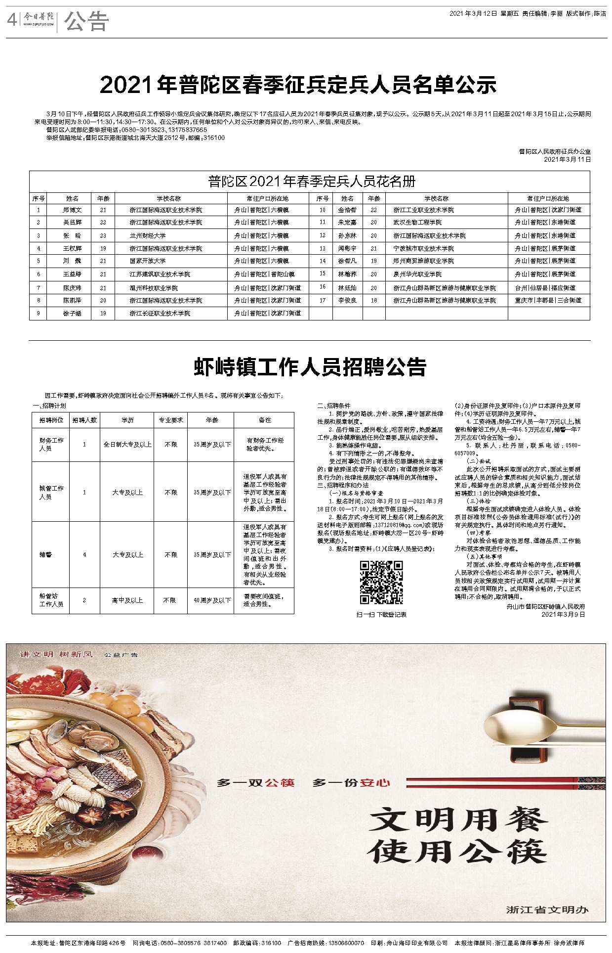 普陀区2021年春季定兵人员花名册