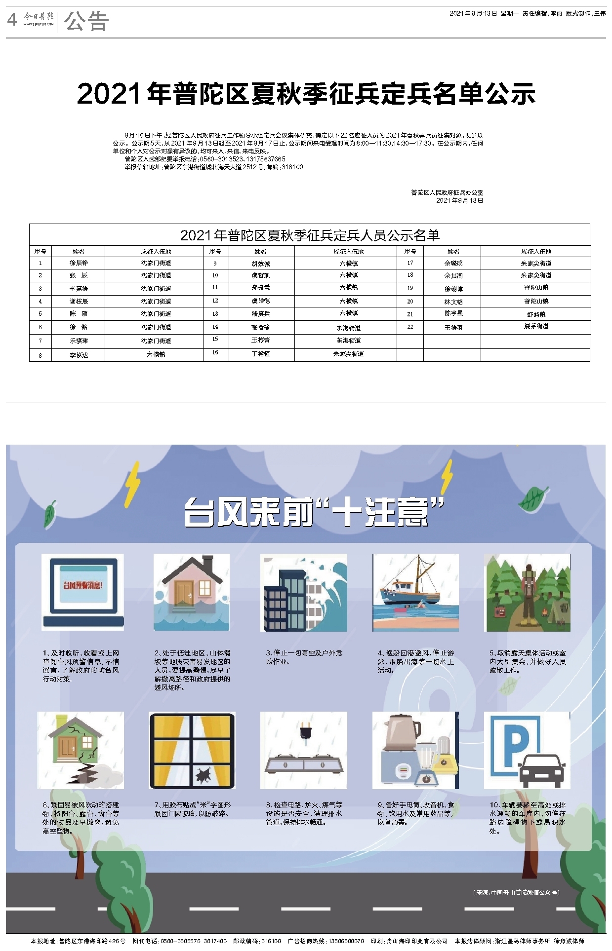 2021年普陀区夏秋季征兵定兵人员公示名单