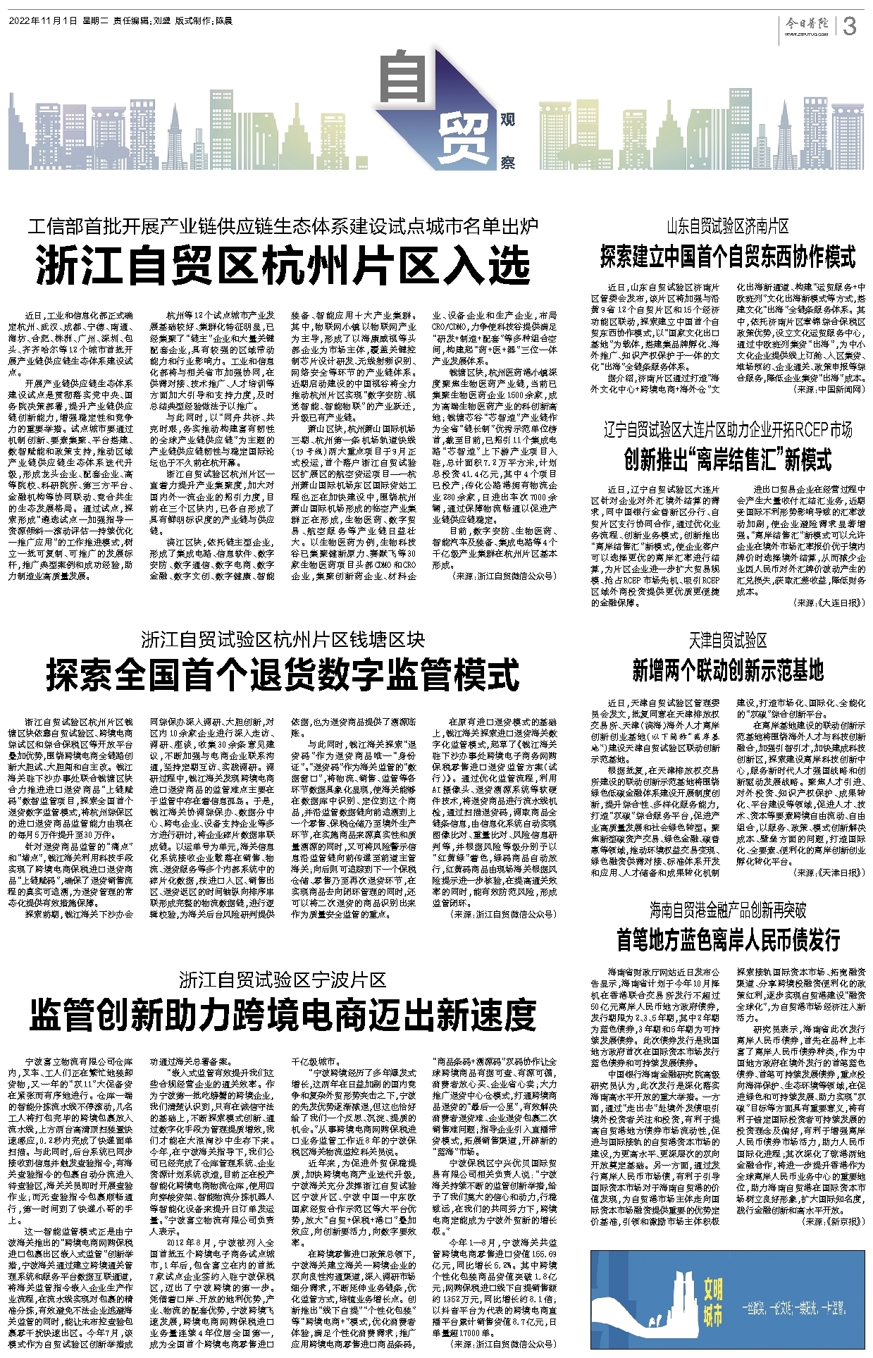 浙江自贸区杭州片区入选