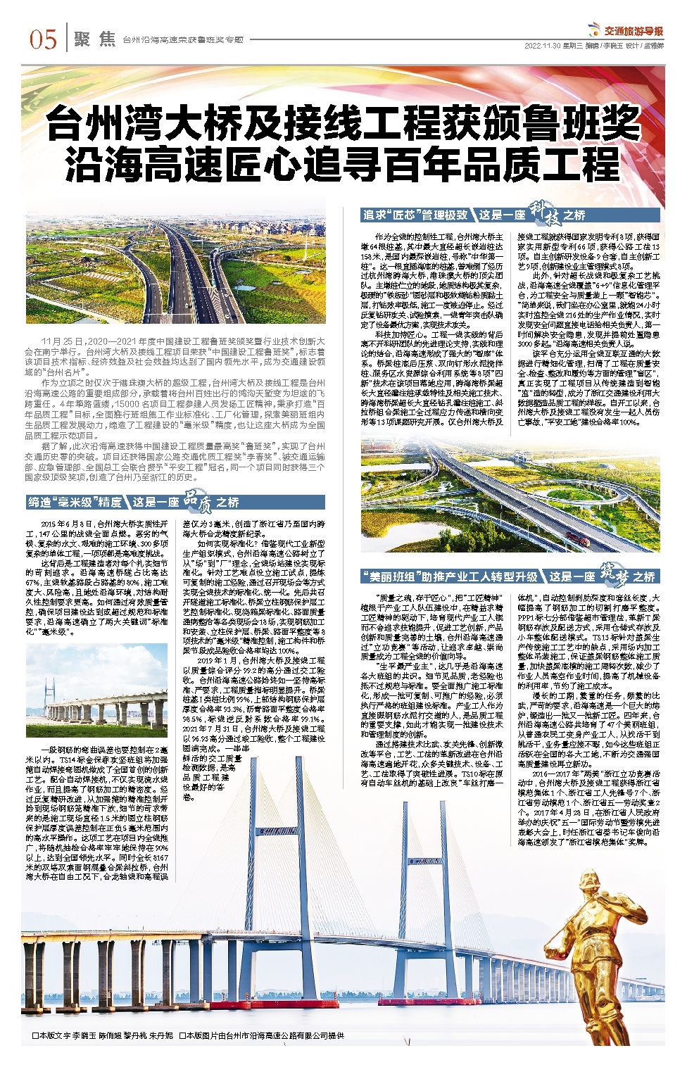 台州湾大桥及接线工程获颁鲁班奖 沿海高速匠心追寻百年品质工程