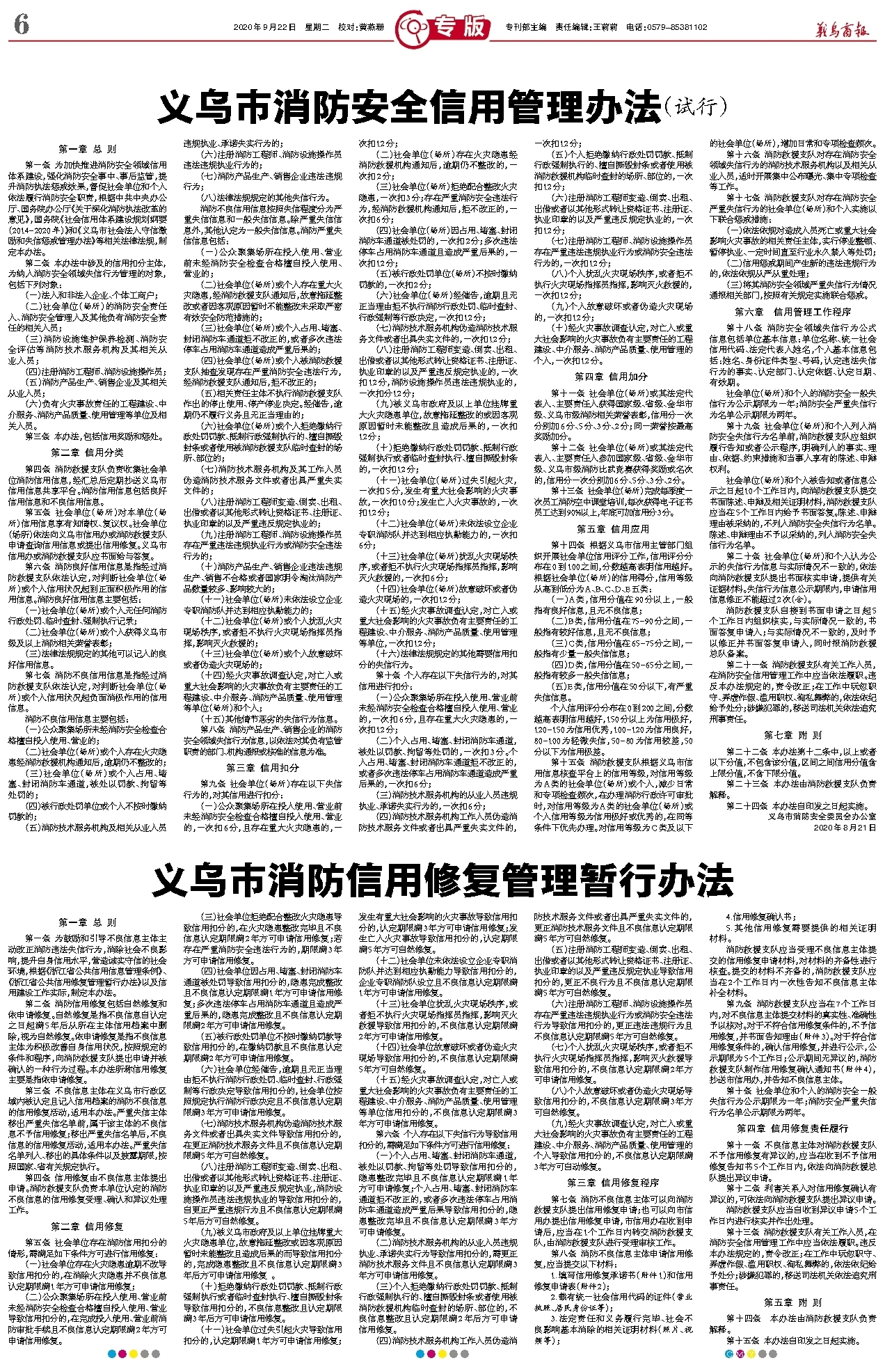 义乌市消防信用修复管理暂行办法