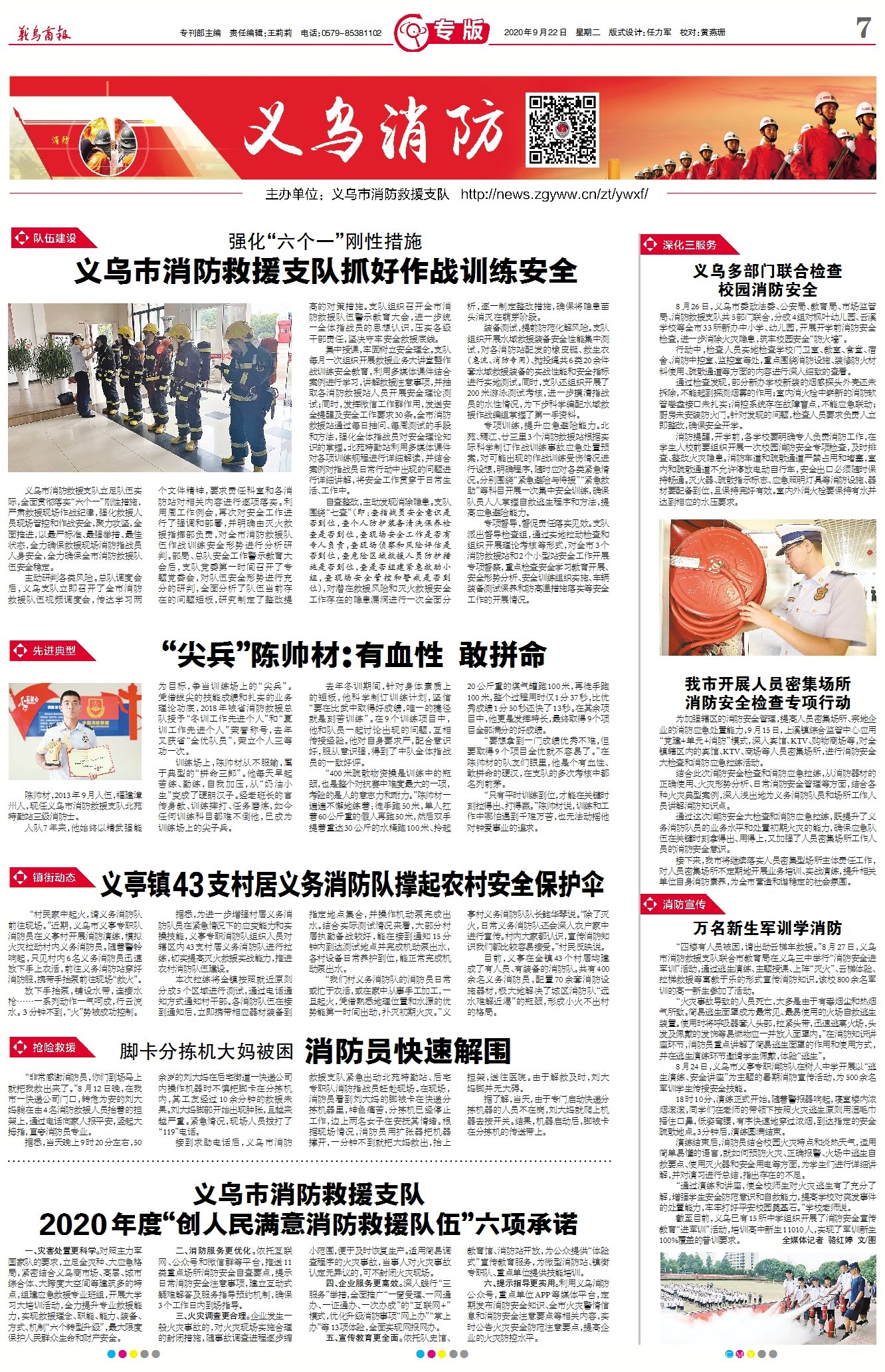 义乌市消防救援支队 2020年度“创人民满意消防救援队伍”六项承诺