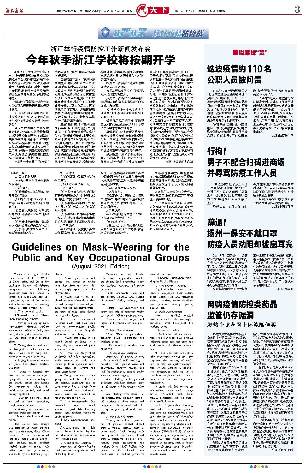 Guidelines on Mask-Wearing for the Public and Key Occupational Groups