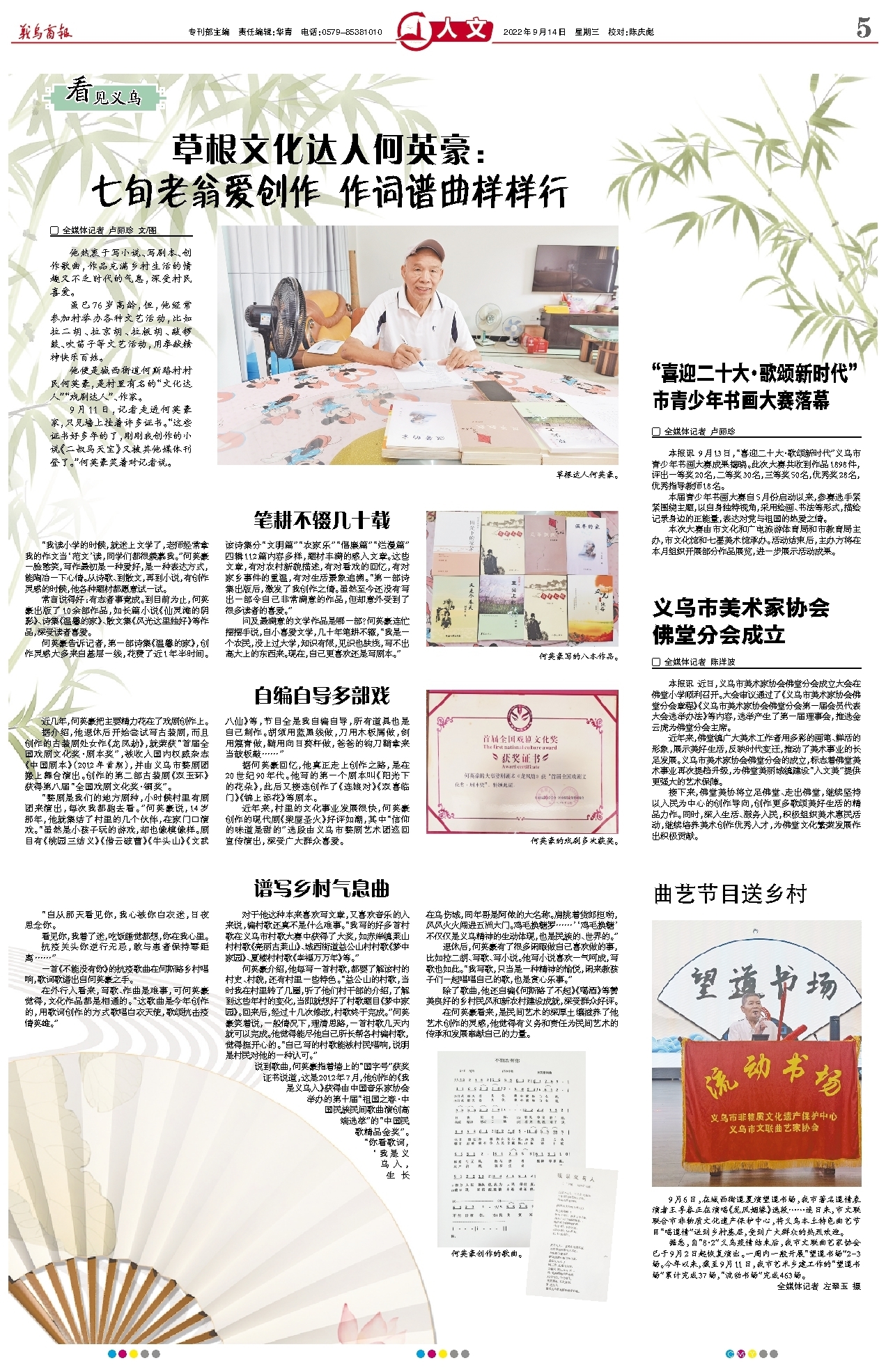 七旬老翁爱创作 作词谱曲样样行